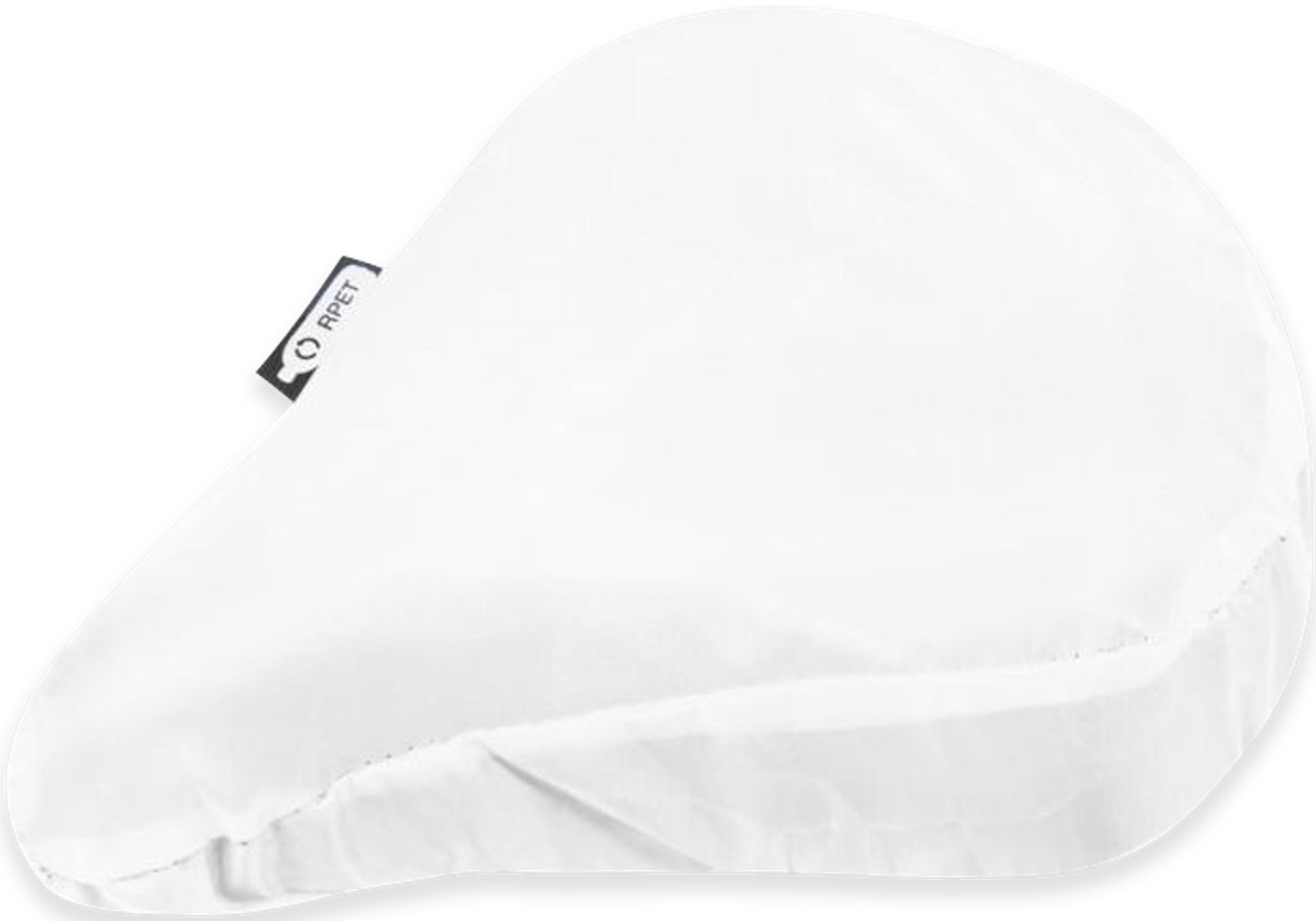 Reusable and lightweight bicycle saddle cover made of recycled PET, with an elastic band to fit on most bicycle saddles.