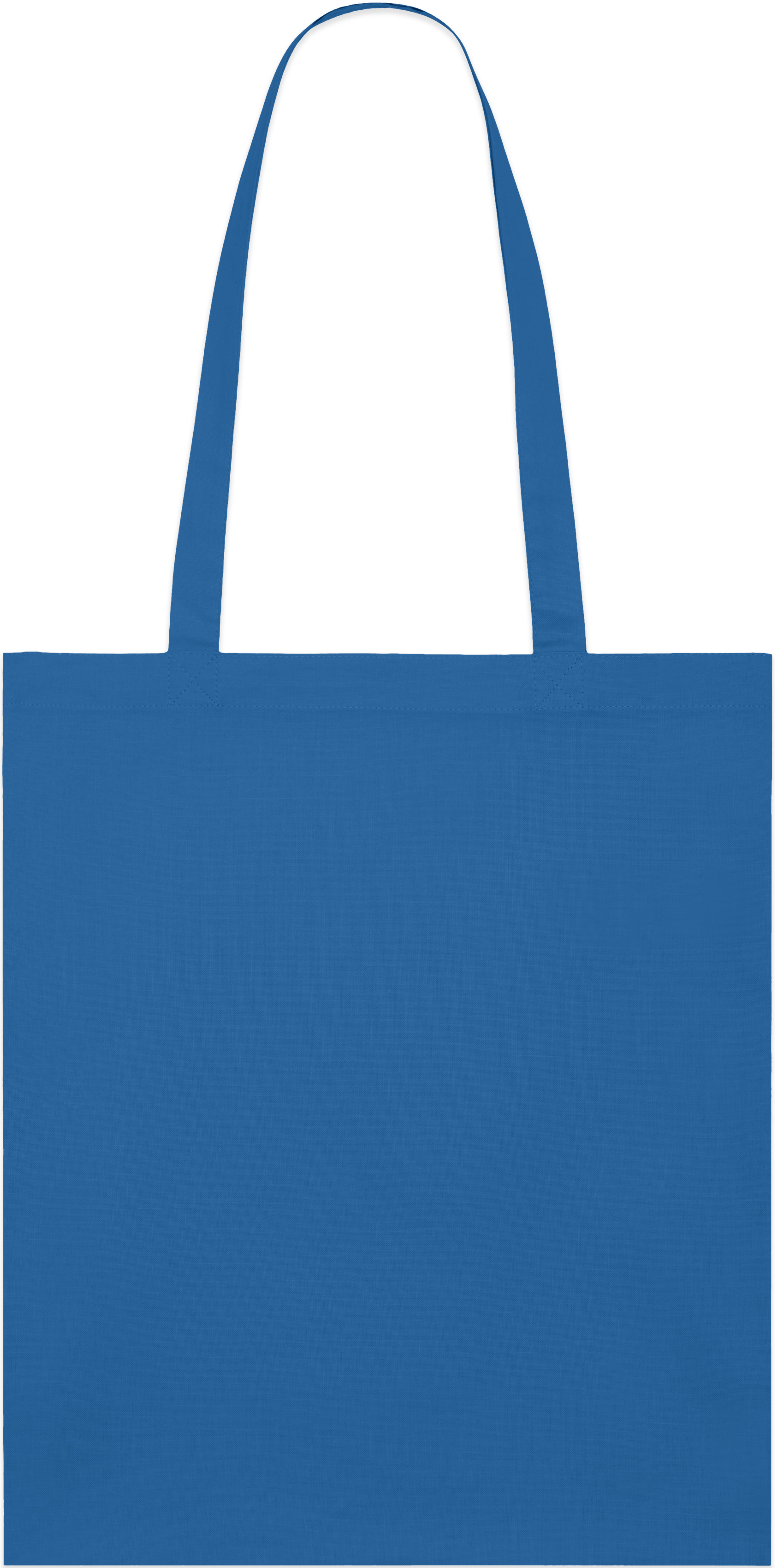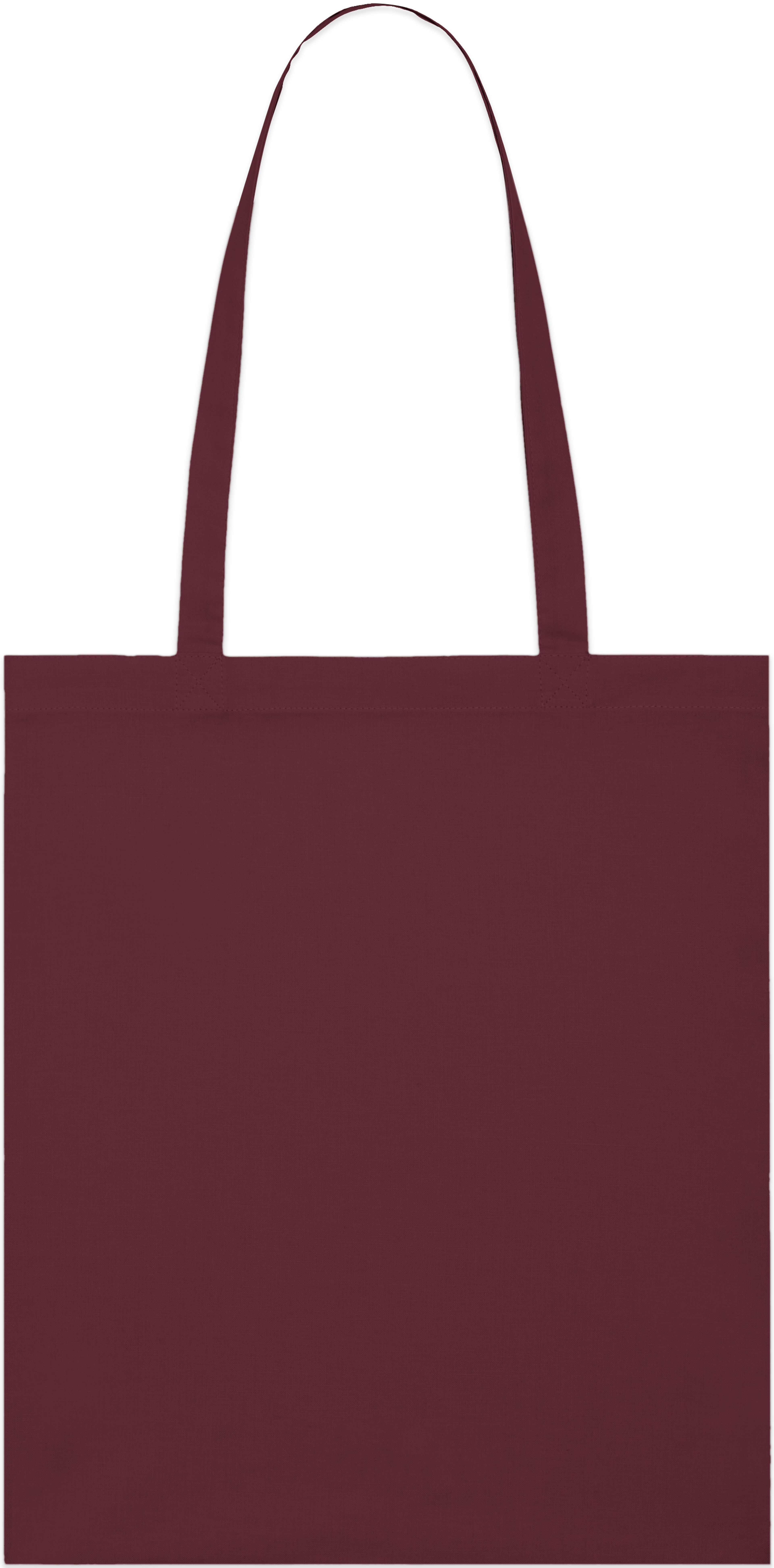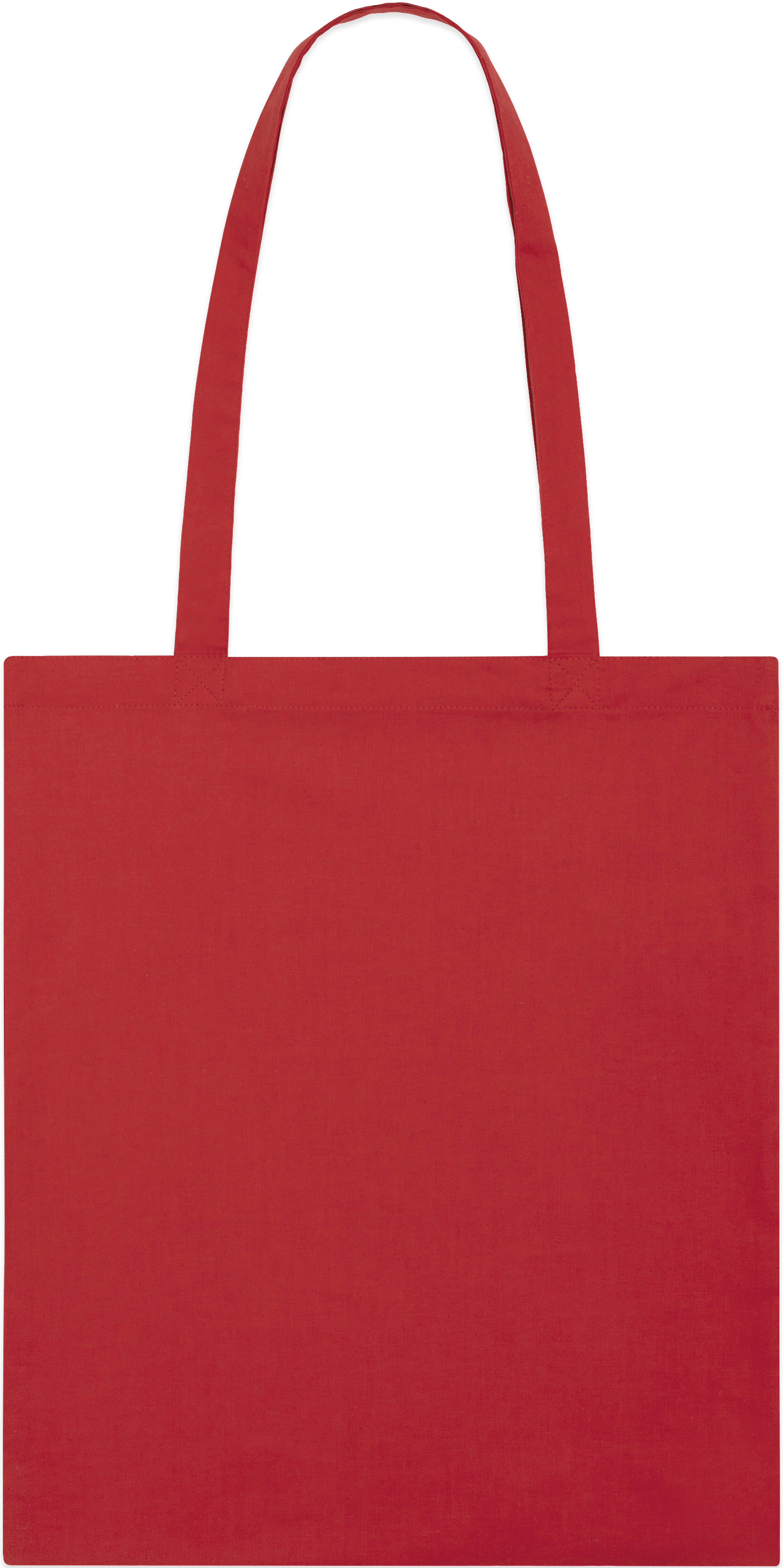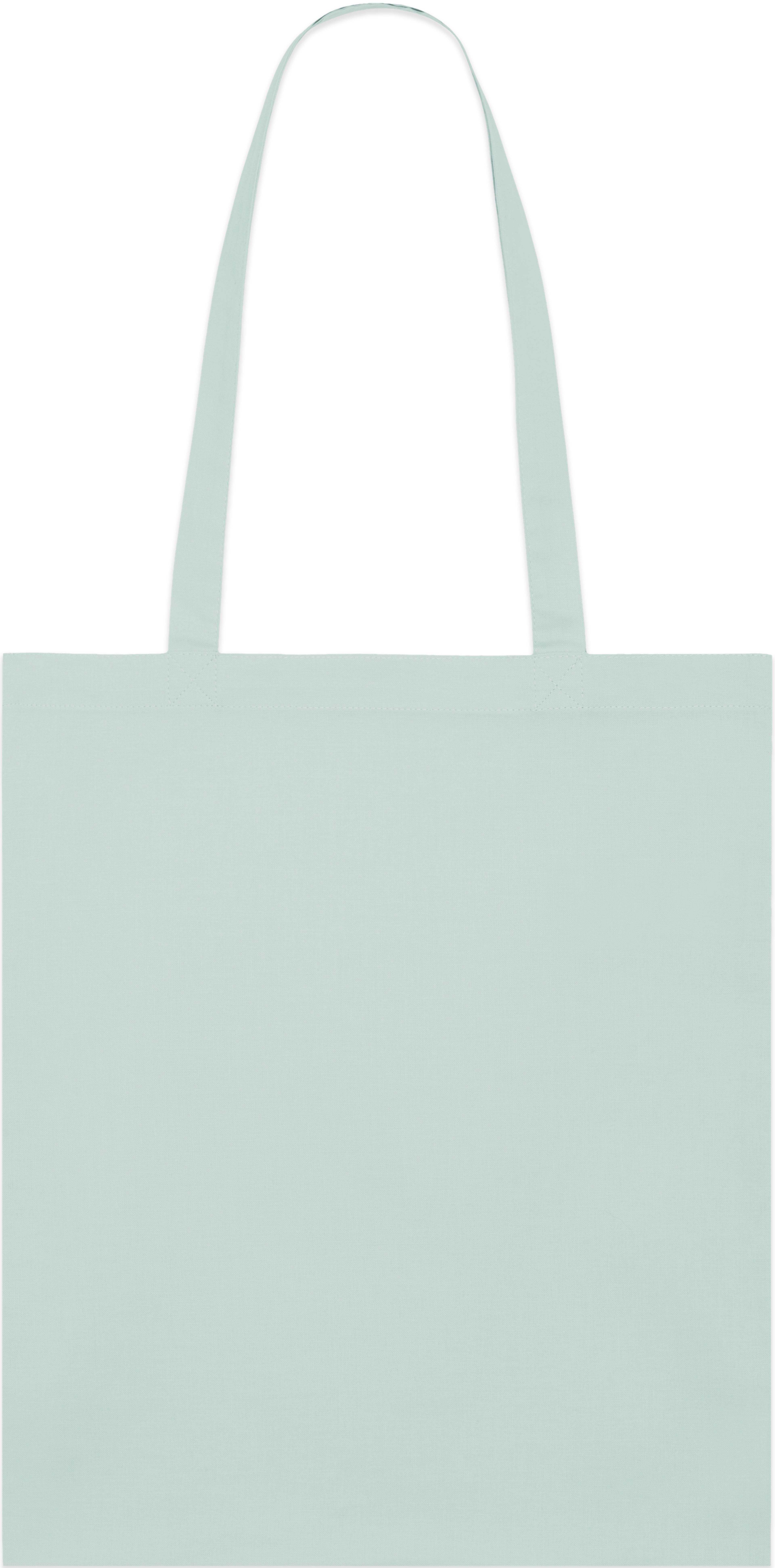 Light tote bag with top edge double folded for strength and clean finish. Long handles with reinforced cross stitch.